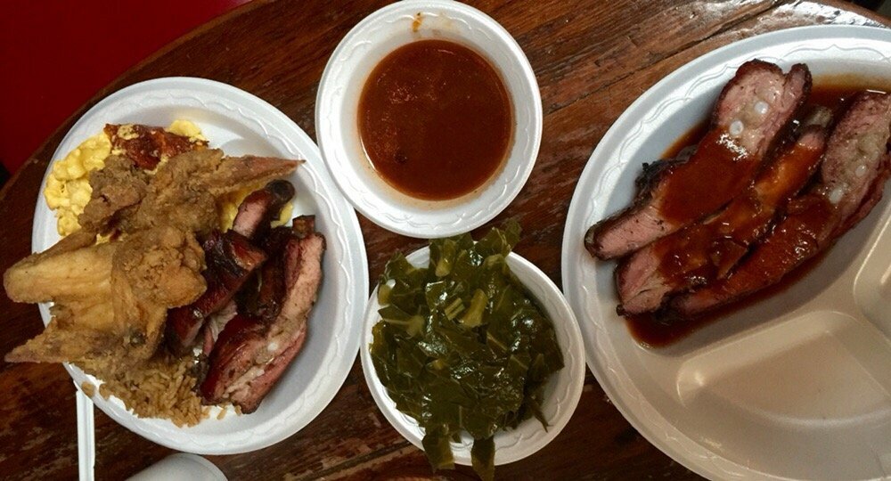Soul food and bbq at its very best!Fried ribs! Collards cabbage and beans!